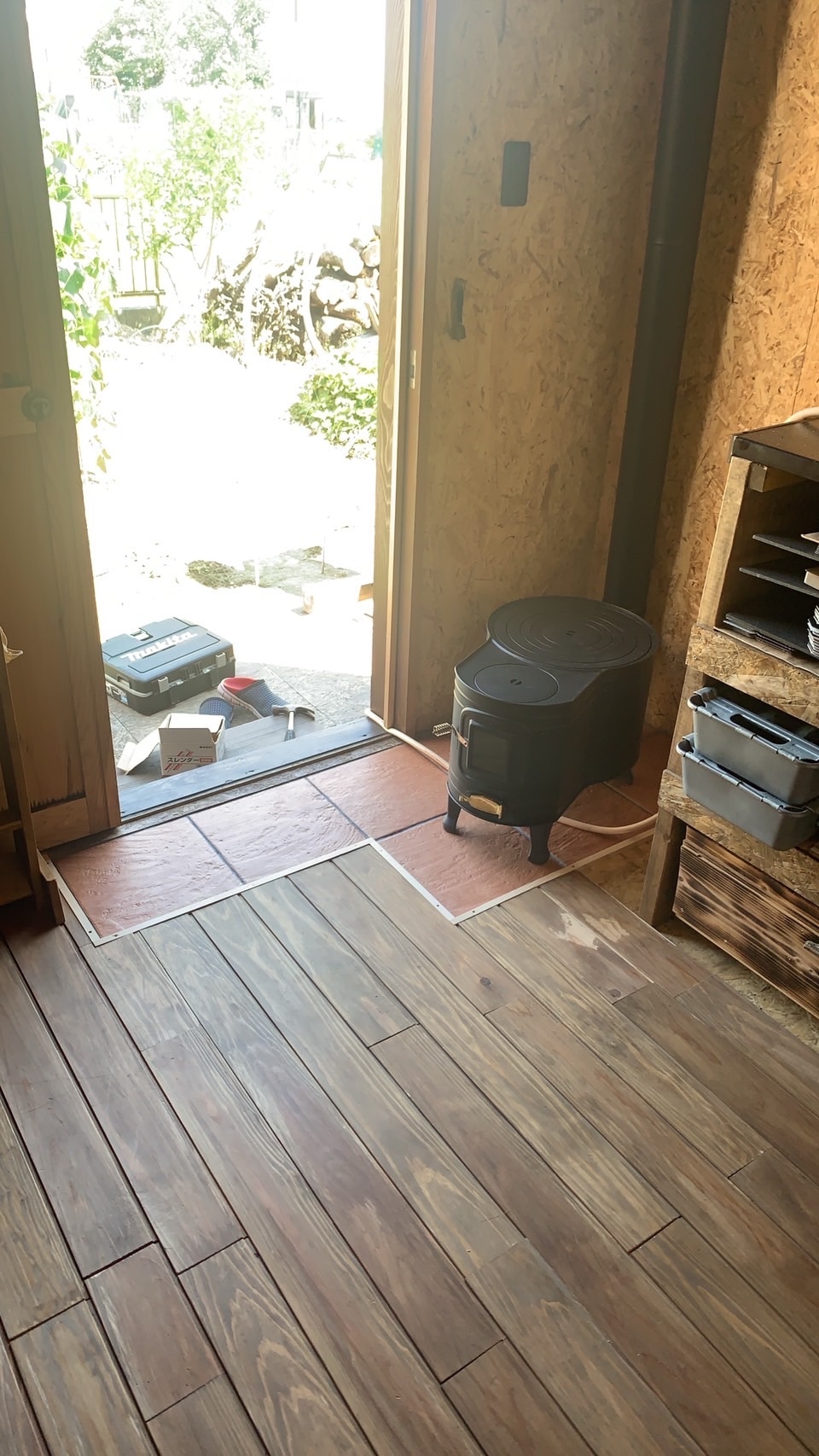 上:床材は外壁の余りを利用、雰囲気が出ました!